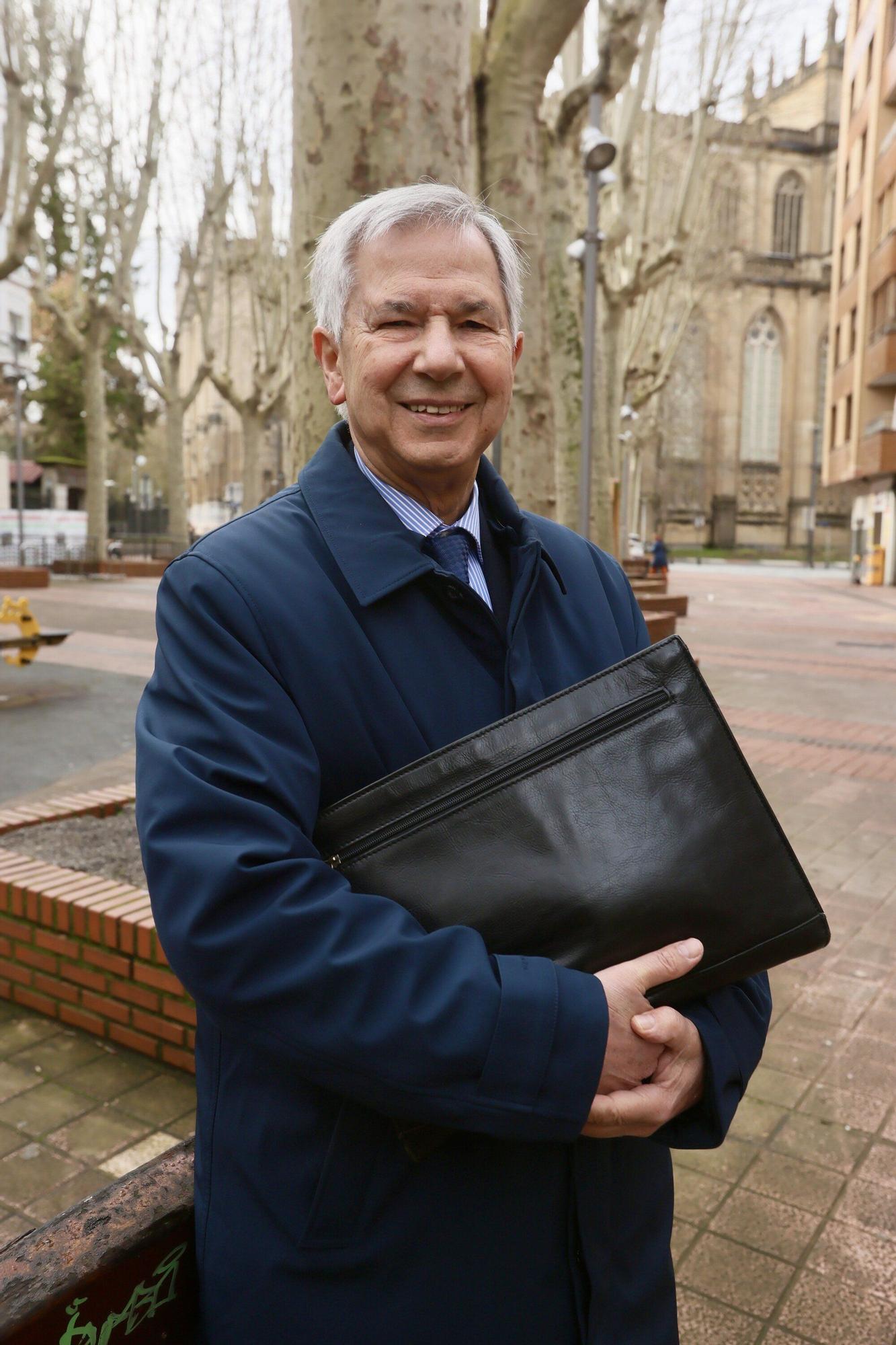 Juan Manuel Sinde, presidente de la Fundación Arizmendiarrieta, frente a la sede del Obispado de Gasteiz. Pilar Barco